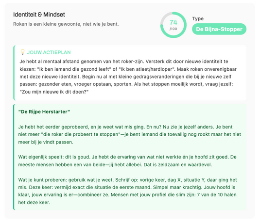 Wir glauben, dass das Aufhören nicht für alle gleich ist. Jemand, der vor allem aus Geselligkeit raucht, braucht nicht die gleiche Herangehensweise wie jemand, der aus Gewohnheit raucht. Und doch bekommt jeder den gleichen Rat: „Hör einfach auf.“ Oder: „Kleb dir ein Nikotinpflaster auf.“ Als ob eine Methode für Millionen verschiedener Menschen passen würde.